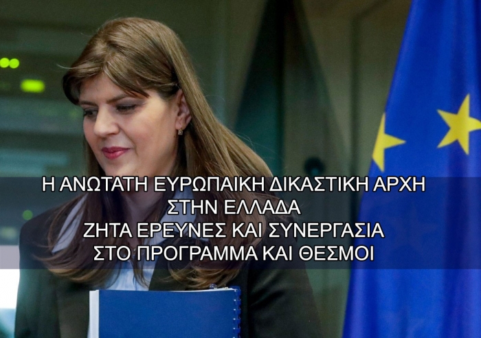 Η επικεφαλής της Ευρωπαϊκής Εισαγγελίας θα επισκεφθεί το ελληνικό γραφείο της EPPO στην Αθήνα και θα έχει διαδοχικές επαφές με υπουργούς, τον αρχηγό της ΕΛ.ΑΣ., στελέχη των τελωνείων και τον γενικό εισαγγελέα.