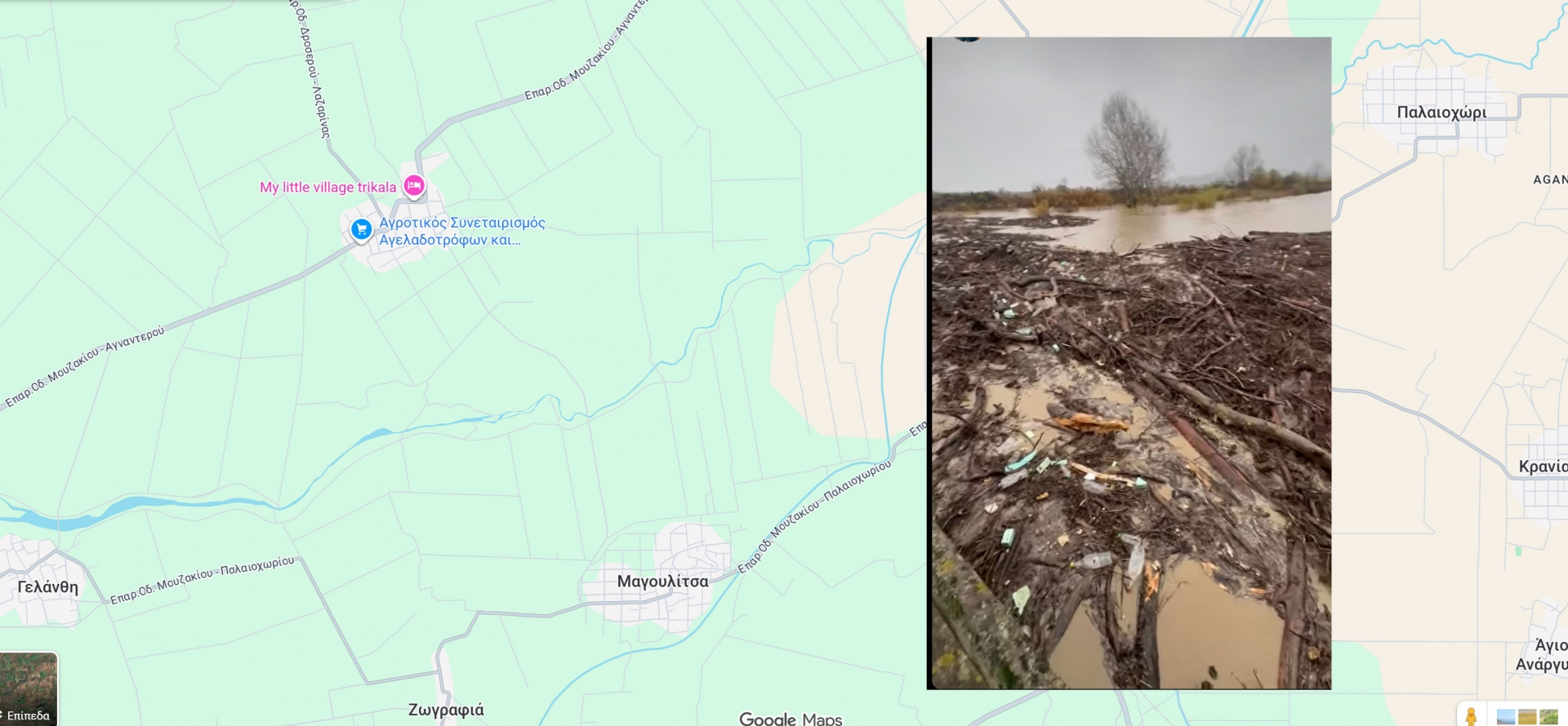 Το φούσκωμα στα ποτάμια ξεκίνησε νωρίς από τον Πάμισο στην ευρύτερη περιοχή Μουζακίου και στις γέφυρες του επαρχιακού δικτύου Παλαιοχωρίου όπου φερτά υλικά δημιουργήσαν αναχώματα και το νερό πάτησε παρακείμενα χωραφια.