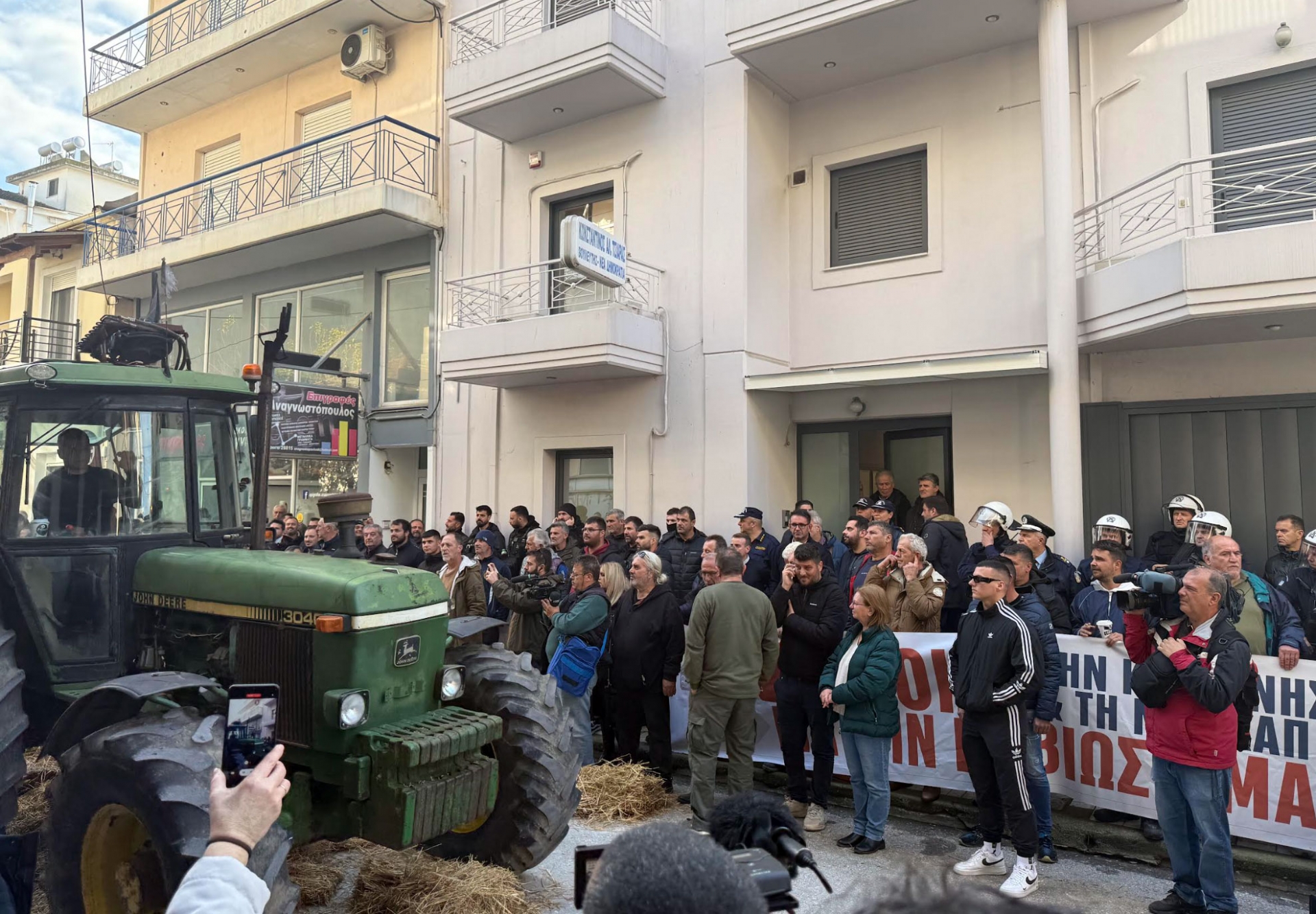 Οι αγρότες διαμαρτυρήθηκαν γιατί ήθελαν να φτάσουν με το κονβοι μπροστά στην είσοδο του πολιτικού γραφείου.