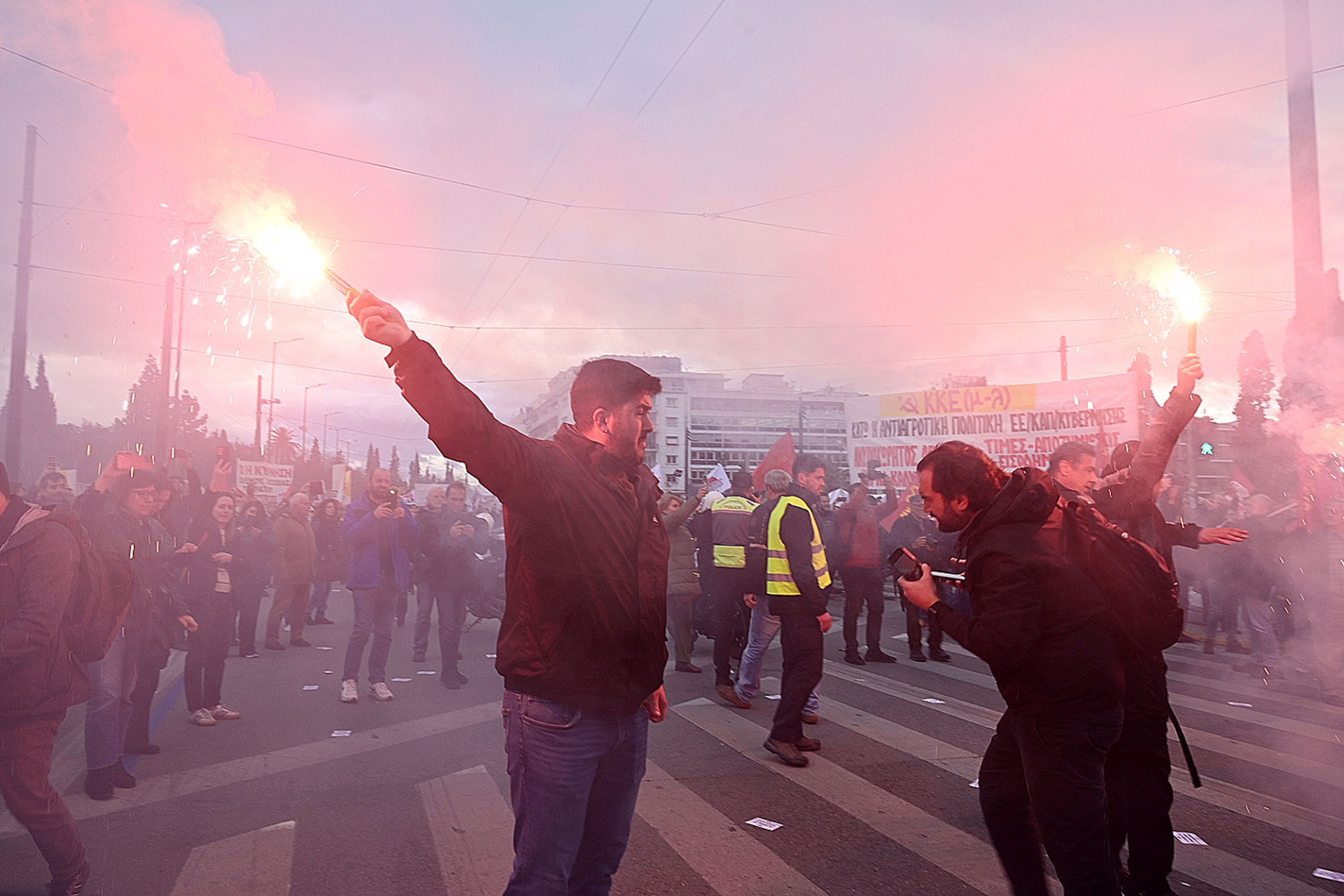 Στο Σύνταγμα τους υποδέχονται εργαζόμενοι του ιδιωτικού και του δημόσιου τομέα, φοιτητικοί σύλλογοι και κοινωνικοί φορείς.