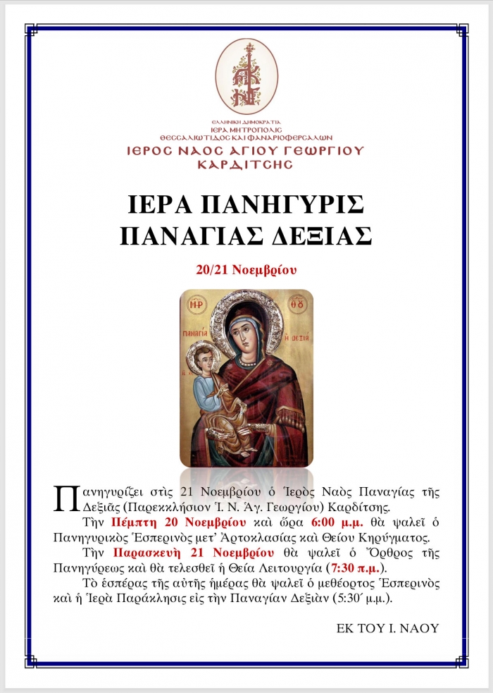 ΙΕΡΑ ΠΑΝΗΓΥΡΙΣ ΠΑΝΑΓΙΑΣ ΔΕΞΙΑΣ