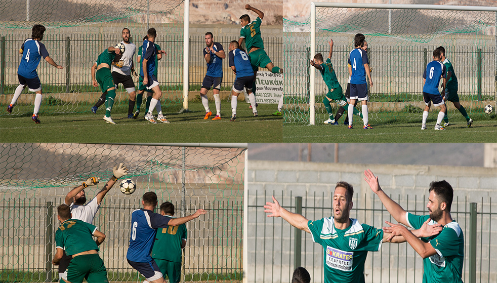 . Βρέθηκε μπροστά στο σκορ η ομάδα του Γ Γκαβογιάννη οπου με ένα δυνατό τρίδυμο στην επίθεση πήρε τον έλεγχο. Μεσιακάρης,Κρανιώτης,Αδάμος πραγματικά κυριαρχούσαν στις επιθεσεις και εκει στο 30 μια ξαφνική αλλαγή στην αδύναμη πλευρά της άμυνας των πρασίνων ο Μανασής ξάφνιασε και με σουτ μετά από σέντρα αλλαγής από αριστερά της μεγάλης περιοχής στην δεξιά της μικρής περιοχής βρέθηκε στις πλάτες της άμυνας των πρασίνων και έγραψε το 0-1
