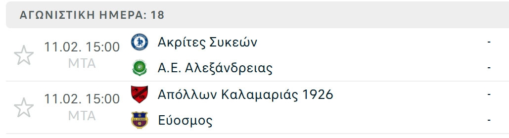 Οι Απόλλων Καλαμαριάς, Ακρίτες Συκεών, Πιερικός, Ερμής Εξοχής, Αλεξάνδρεια και ΑΕ Ευόσμου έχουν αγώνα λιγότερο ΚΑΙ ΤΟ ΠΡΟΓΡΑΜΜΑ ΕΧΕΙ ΟΡΙΣΤΕΙ
