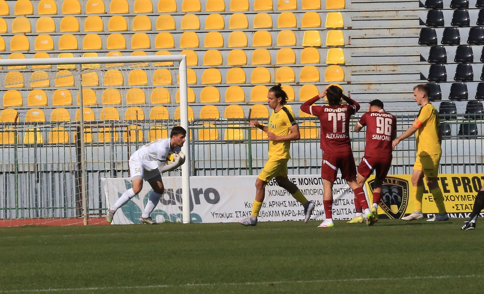 Ο Φρίμπονγκ έκανε το γύρισμα από τα δεξιά, με τον αμυντικό των Θεσσαλών, Γκόλια να κάνει μια προβολή στη μπάλα, δίνοντας της τροχιά προς τα δίχτυα αλλά ο Μπαλωμένος με μια εντυπωσιακή και δύσκολη απόκρουση έδιωξε τη μπάλα σε κόρνερ.