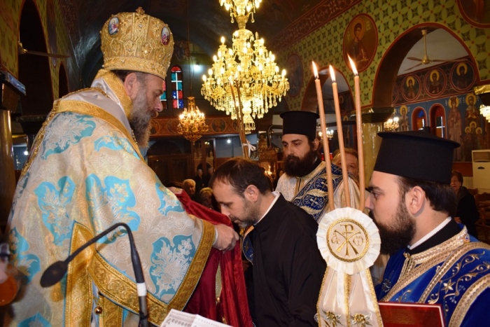 Κατά τη διάρκεια αυτής, προέβη στην εις Διάκονον χειροτονία του κ. Γεωργίου Μπεμπέ.