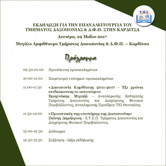 Εκδήλωση για την επαναλειτουργία του Τμήματος Δασοπονίας και Διαχείρισης Φυσικού Περιβάλλοντος του ΤΕΙ Θεσσαλίας