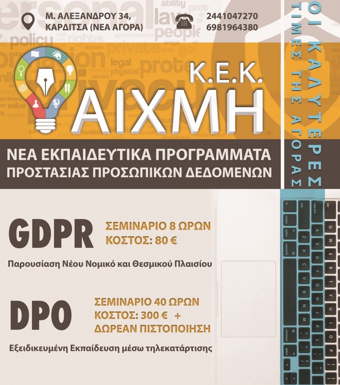 ΕΚΠΑΙΔΕΥΤΙΚΑ ΠΡΟΓΡΑΜΜΑΤΑ GDPR ΣTO K.E.K AIXMH