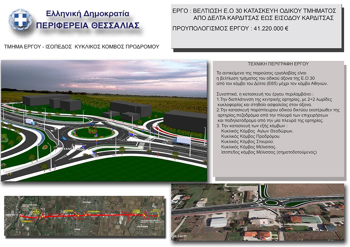 Επιπλέον, με χρηματοδότηση από το ΕΣΠΑ (42 εκατ. ευρώ) αλλάζει η εικόνα της Καρδίτσας, με την ανάπλαση του οδικού τμήματος από το Δέλτα έως την είσοδο της πόλης.