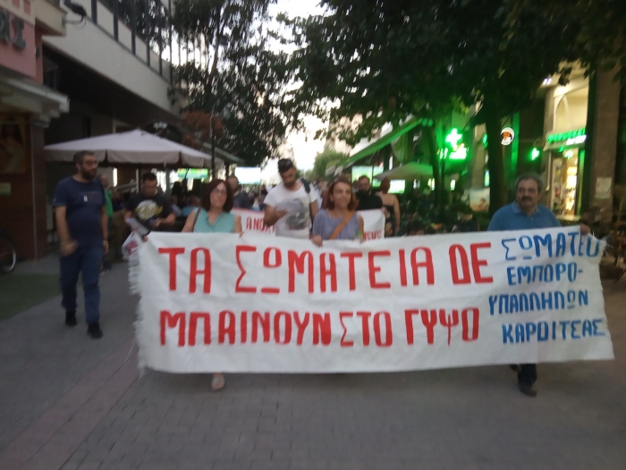 Στη συνέχεια πραγματοποιήθηκε πορεία στους δρόμους της Καρδίτσας που κατέληξε στο Εργατικό Κέντρο. Εκεί οι συγκεντρωμένοι καταδίκασαν την στάση της πλειοψηφίας του εργατικού κέντρου, έγραψαν συνθήματα και έδωσαν αγωνιστικό ραντεβού για τις 24 Σεπτέμβρη.