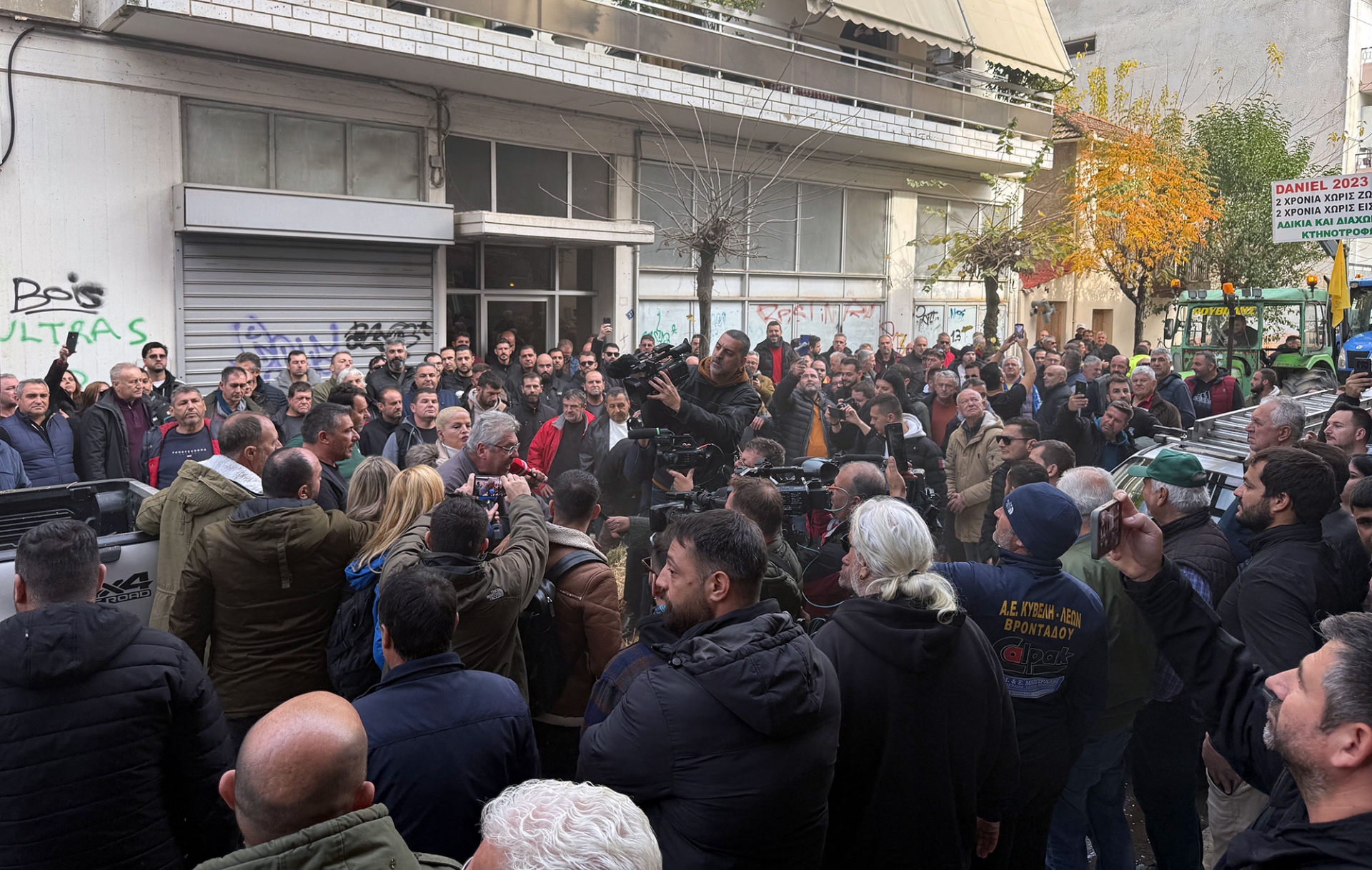 Οι αγρότες διαμαρτυρήθηκαν γιατί ήθελαν να φτάσουν με το κονβοι μπροστά στην είσοδο του πολιτικού γραφείου.