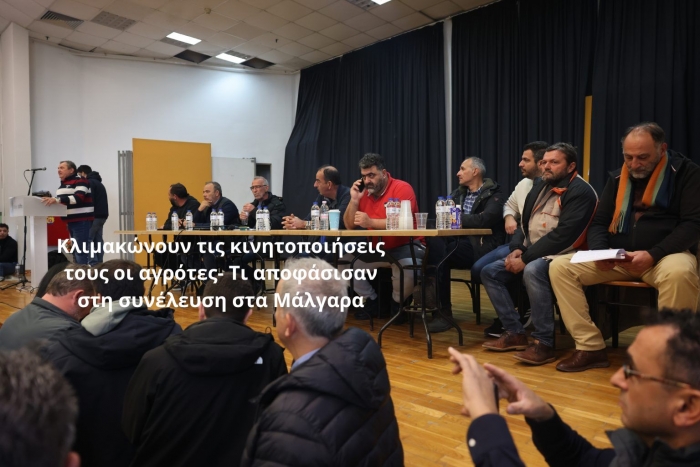 Πριν λίγο ολοκληρώθηκε η πανελλαδική σύσκεψη των αγροτών στα Μάλγαρα, με τις αποφάσεις τους να είναι για κλιμάκωση των κινητοποιήσεων στα όρια «πολιορκίας», όπως λένε.