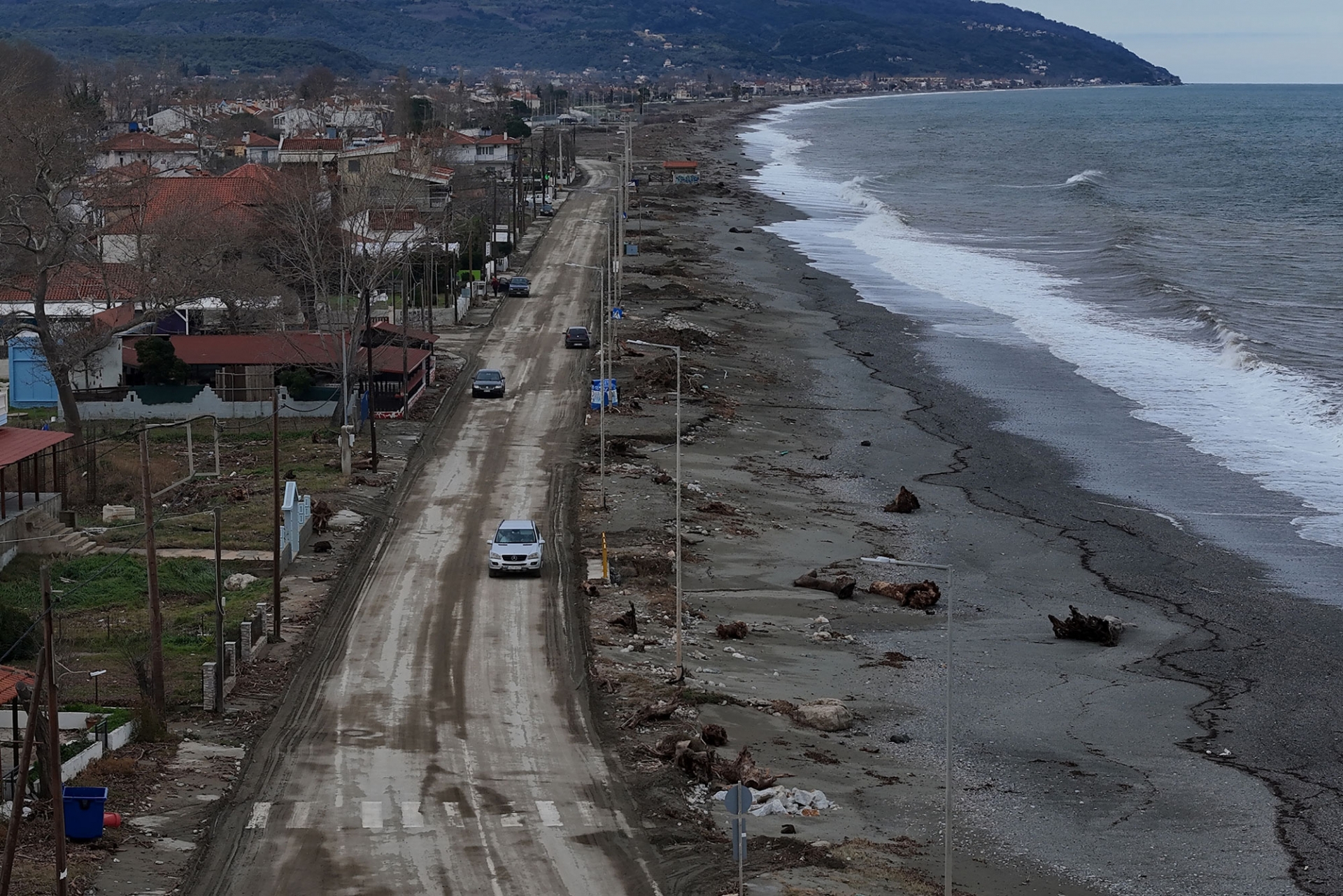 Από τον Αγιόκαμπο έως τη Βελίκα, παραθαλάσσιοι δρόμοι βρίσκονται σε κακή κατάσταση, εκτάσεις έχουν πλημμυρίσει και συσσωρευμένα νερά καταγράφονται ακόμη και σε κεντρικούς άξονες από τη Λάρισα προς τα παράλια.