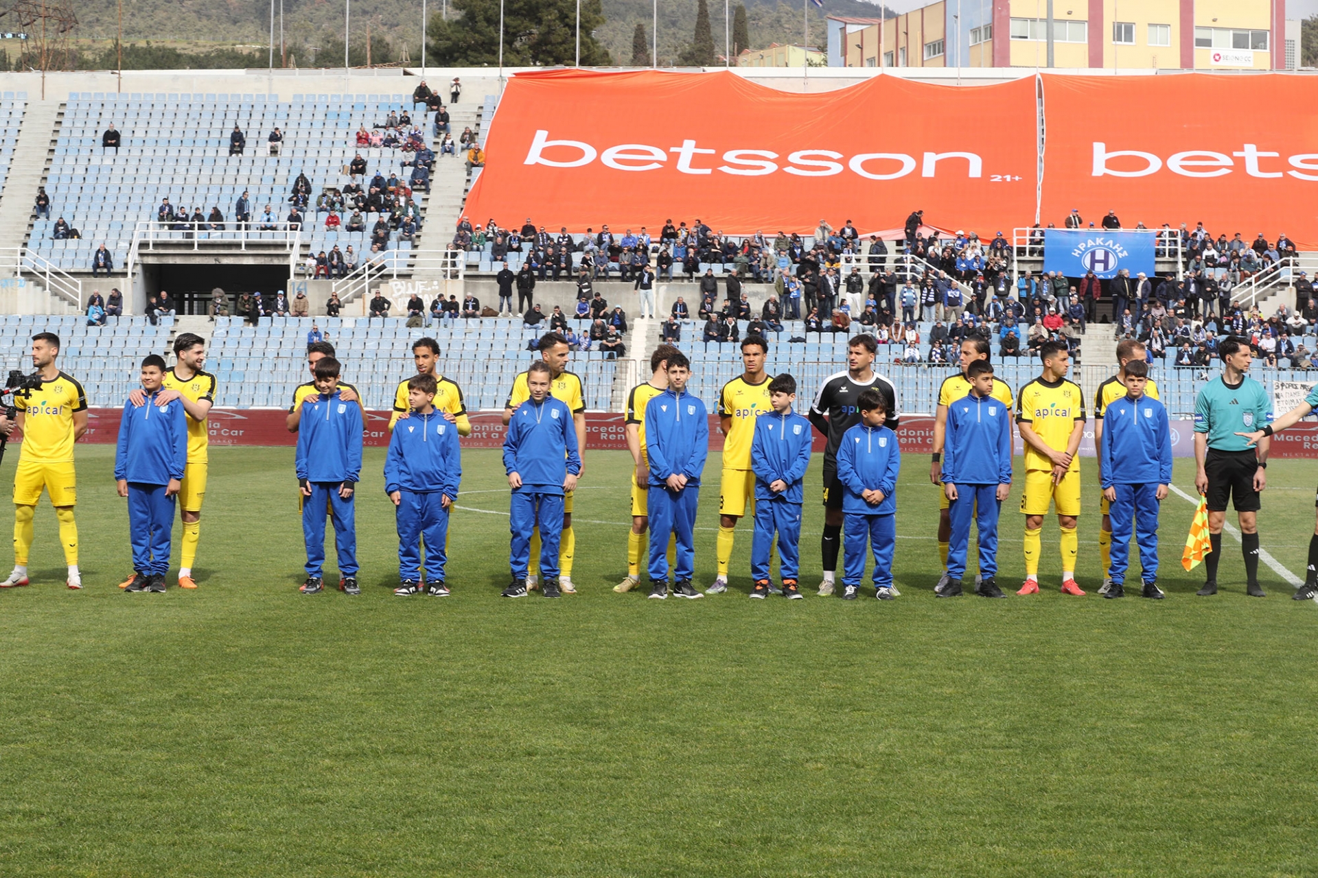 Η ατμόσφαιρα είναι πανηγυρική για την ομάδα του Ηρακλή αφού μετα την λήξη του αγώνα θα ακολουθήσει η φιέστα ανόδου στην Α Εθνική