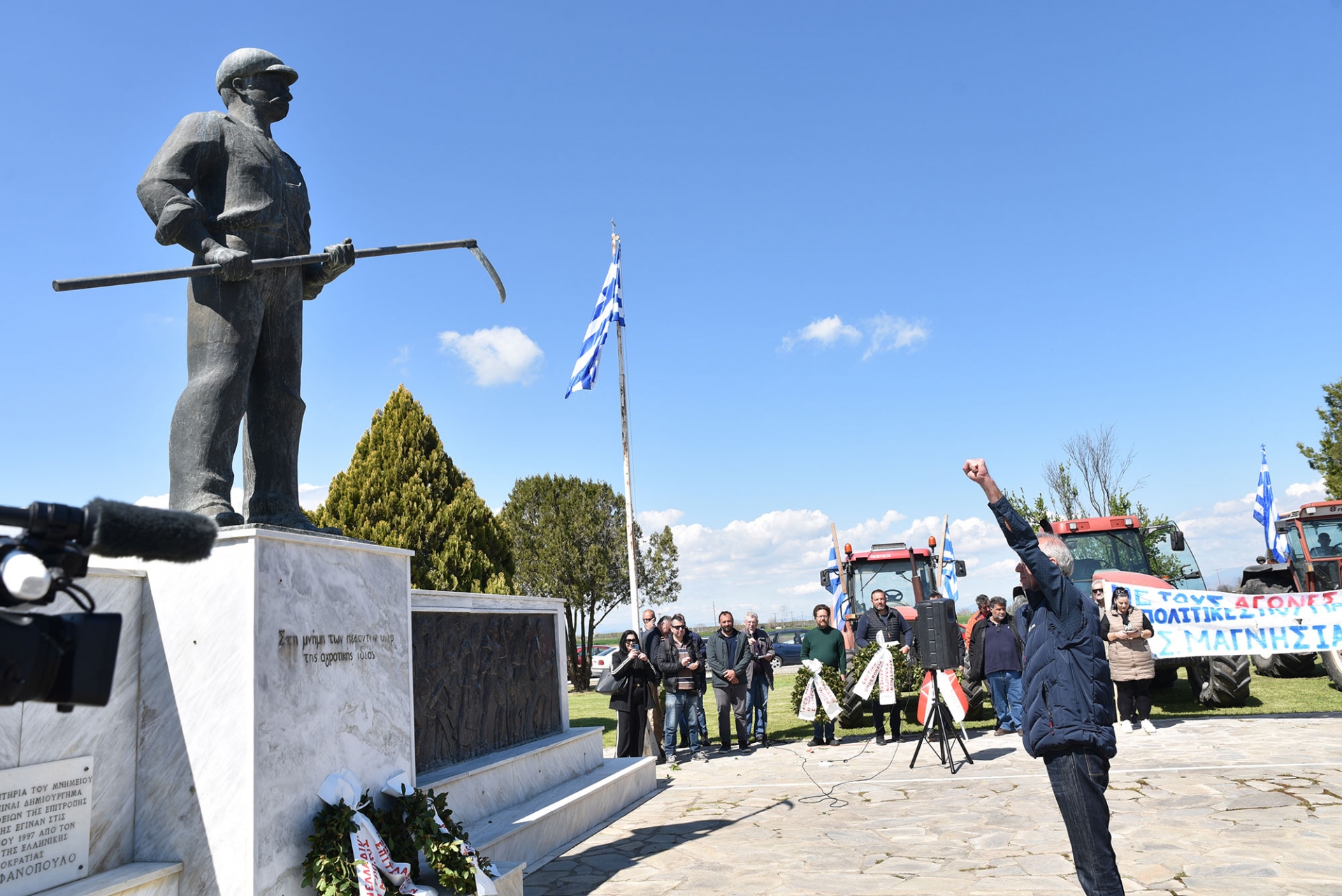 Με συγκέντρωση με αγροτικά μηχανήματα και κατάθεση στεφάνων στο μνημείο της εξέγερσης των κολίγων η πανελλαδική επιτροπή μπλόκων τίμησε την επέτειο της εξέγερσης