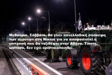 του Α/Κ Νίκαιας, λόγω αγροτικών κινητοποιήσεων επί του Π.Α.Θ.Ε. στο