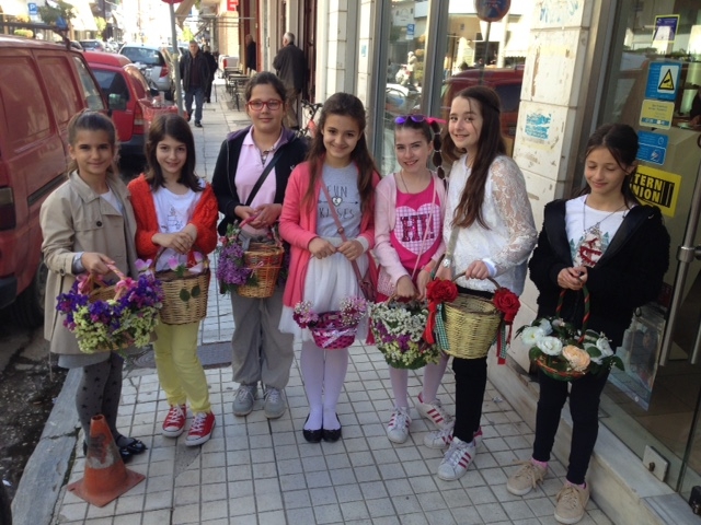 Τα κορίτσια στόλισαν τα καλαθάκια τους με λουλούδια και αφού φόρεσαν τα καλά τους ρούχα, βγήκαν να τραγουδήσουν τα κάλαντα, αναβιώνοντας έτσι ένα παλιό έθιμο.